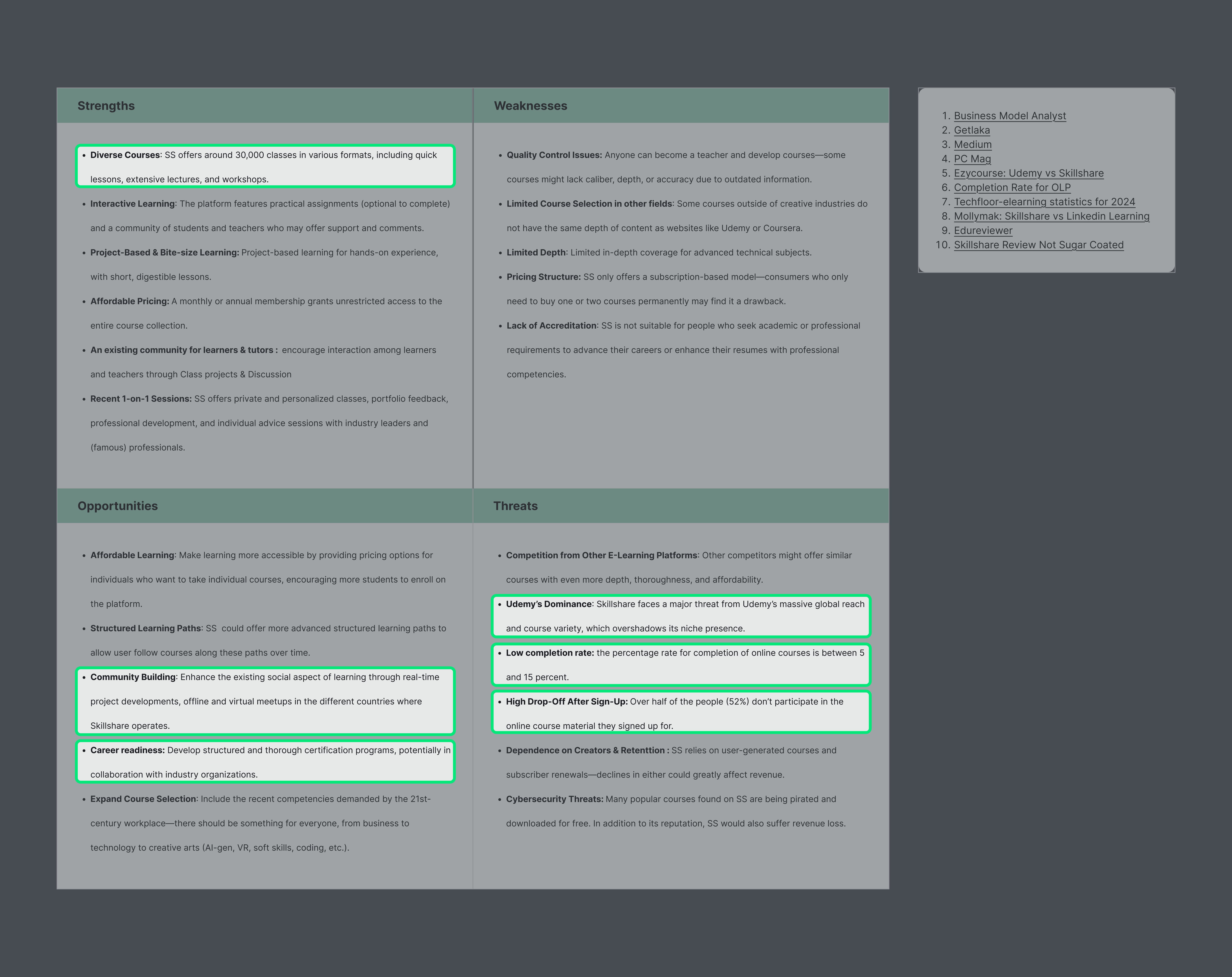 If I had the budget, I’d recruit current Skillshare users for interviews to validate any differences in insights compared to those gathered from users on other platforms.
